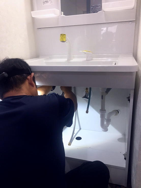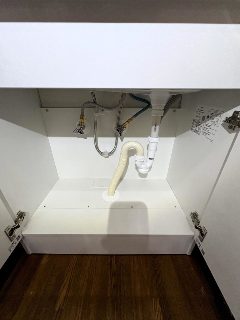 洗面台の交換を行いました! 洗面台 2025.09.17 先日、洗面台の交換作業を行いました。 既存の洗面台を撤去し、 止水栓や排水ホース等をつけて、洗面台の下の部分を設置します。 この時に必ず止水栓部分からさび水を出し切って、綺麗な状態の水にしていきます。 水栓や、鏡等を取付します。 取付した水栓はこちらのTOTO TLS05302Jのシングル混合水栓です。 完成した洗面台が、こちらです♪ 今回設置した洗面台は、TOTO Vシリーズ 750mmの3面鏡のものになります。 新品ぴかぴかの洗面台になりました♪