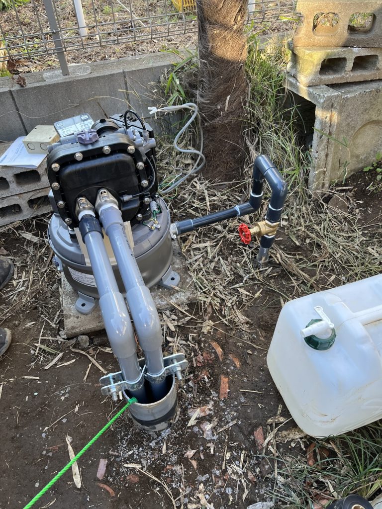 繋ぎが終わった後は、井戸ポンプに呼び水を入れて、試運転を行いました。