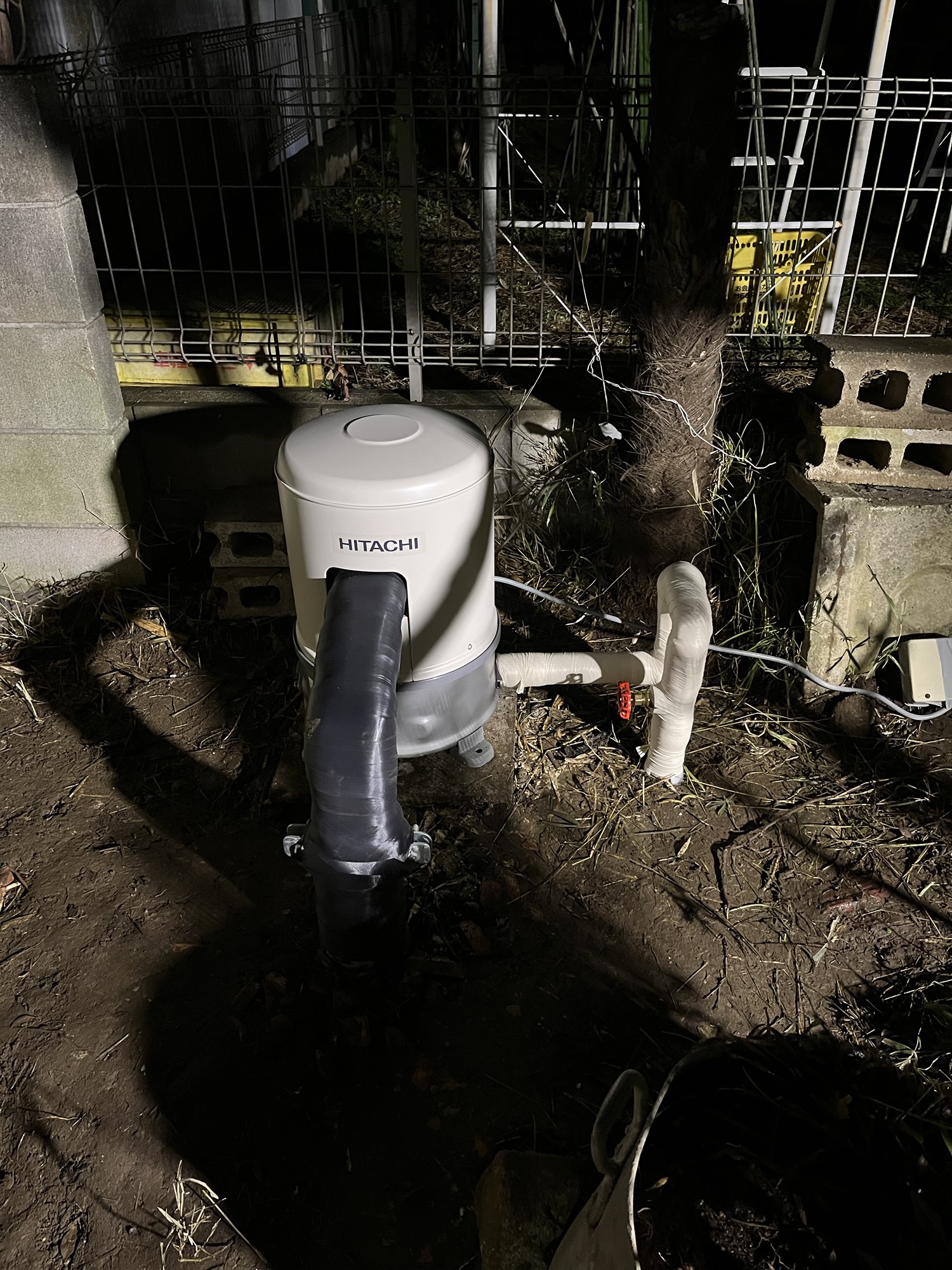 ここで、試運転をしてみましたが、圧が上がらず、電圧不足の表示が出ました。これが出た場合は、電気系統で漏電していて、電圧が足りないことが考えられます。そのため、電気系統を新しく設置して、また試運転を行うと、正常に井戸ポンプが動きました!