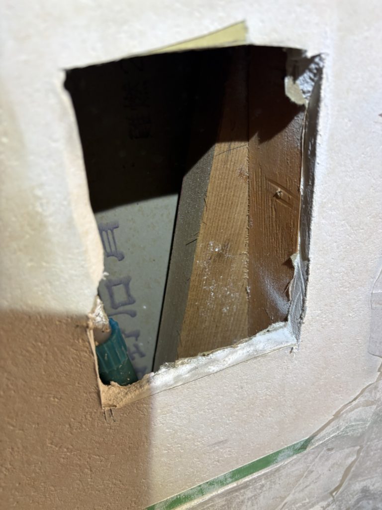 埋込型洗濯水栓をTW11Rに交換 洗濯機のトラブル 2026.03.29 埋込型洗濯水栓ですが、開閉レバーが動かない、水漏れする等のトラブルが結構多いです。また、埋込型洗濯水栓は各メーカーにより部品も異なり、部品も高価で、本体を交換出来ない等のデメリットもありますので、弊社では、通常の単水栓洗濯水栓への交換をおすすめしております。方法としては現在設置されている埋込水栓の回りの壁を開口して、座付水栓エルボを設置し、単水栓洗濯水栓(TW11R)に交換します。通常の単水栓に変更する事により、将来の水栓交換が安価で容易になるメリットもあります。